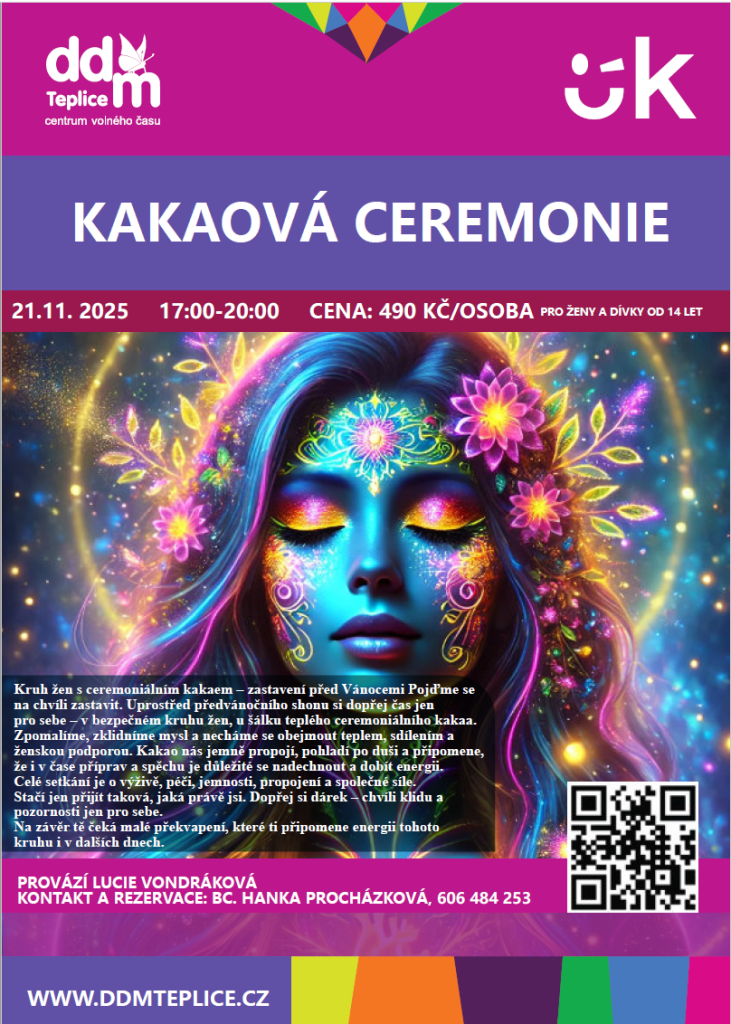 Pojďme se spolu na chvíli zastavit. Dát si čas pro sebe. Zahřát tělo i duši ceremoniálním kakaem, jemným dotekem a sdílením v kruhu žen. Celé setkání je o výživě, péči, jemnosti,
