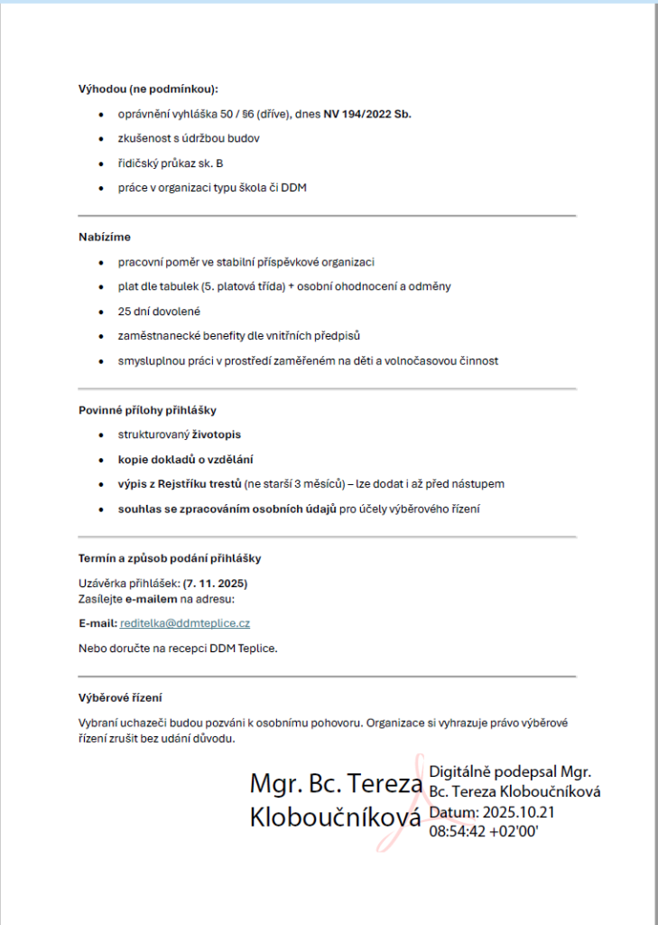 Více informací naleznete na tomto odkaze VÝBĚROVÉ ŘÍZENÍ