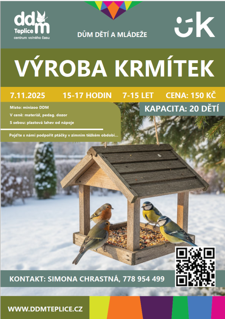 Přijďte si vyrobit krmítka pro ptáčky, která jim pomohou přečkat zimu. Dozvíte se také, které druhy na krmítko přiletí, naučíte se je poznávat a zjistíte, čím jim uděláte největší radost.