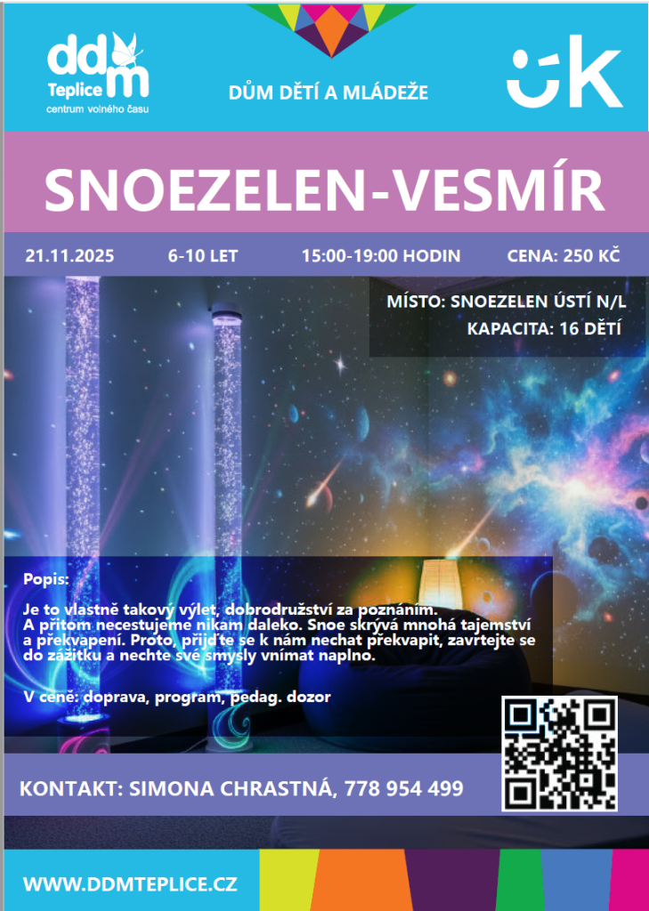 Přihlášky s platbou nejpozději do 17.11.2025. Bližší informace: Simona Chrastná, tel.: 778 954 499