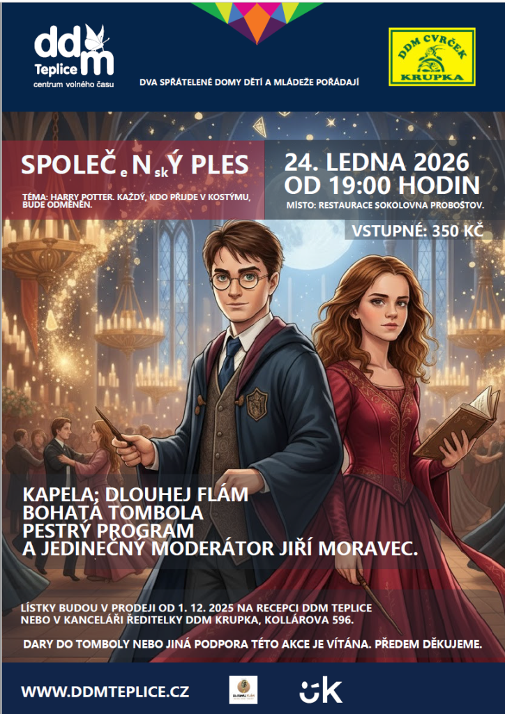 Lístky jsou k dispozici od 1.12.2025 na recepci DDM Teplice nebo v kanceláři ředitelky DDM Krupka.