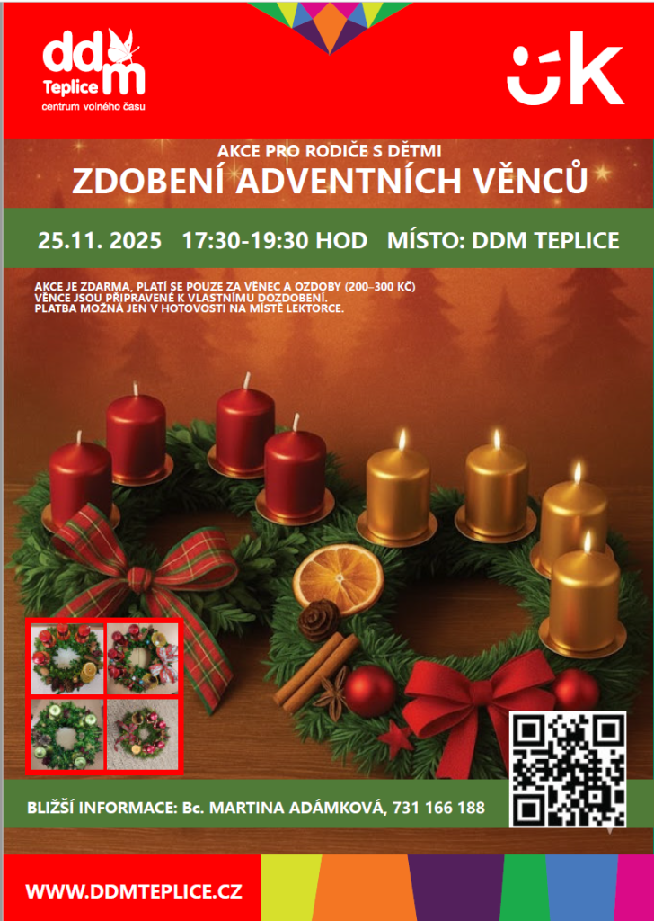 Zveme rodiče a děti na zimní tvořivou dílnu, kde si společně vyrobíme krásné vánoční věnce, abychom měli své originály. Přijďte si užít odpoledne plné kreativity a zábavy. Budeme pracovat s přírodními materiály a dozdobovat dle vlastní fantazie.